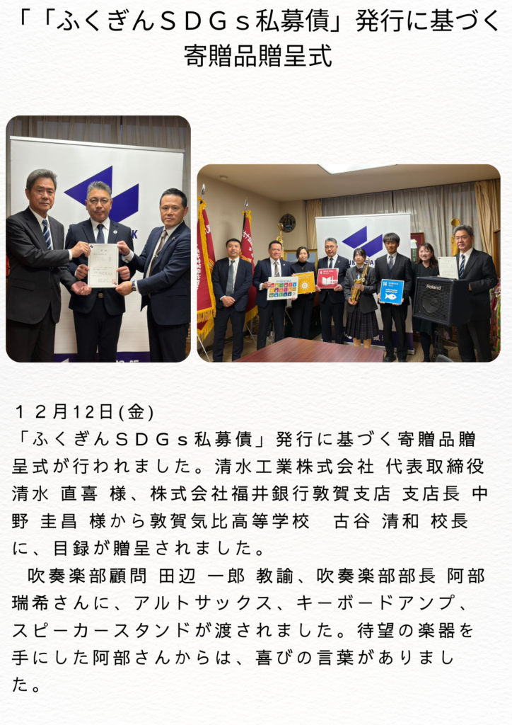 「ふくぎんSDGs私募債」発行に基づく寄贈品贈呈式が行われました。