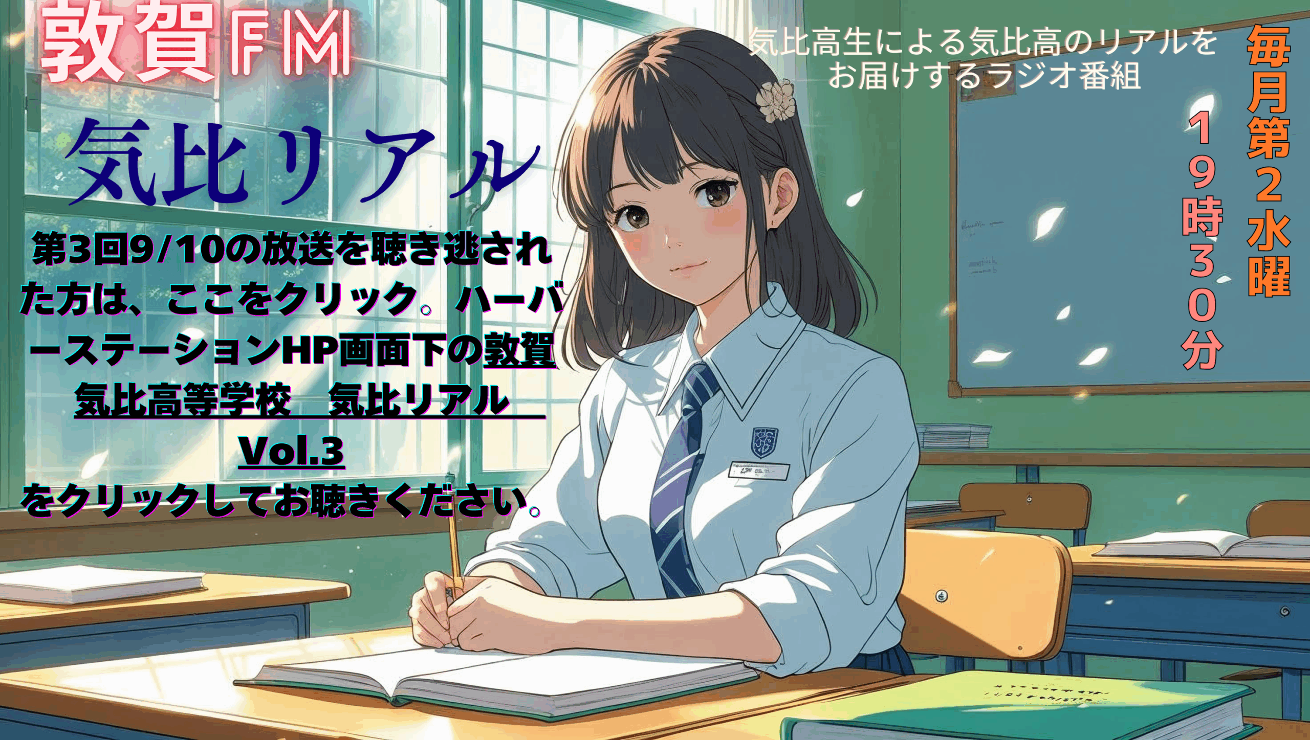 敦賀気比高校1年生探究専攻&放送部のみんなが敦賀FMさんとコラボ!いよいよ7月9日19:30~敦賀気比高校ラジオ番組「気比リアル」がスタートします!毎月、第2水曜日19:30~敦賀FM局で放送。