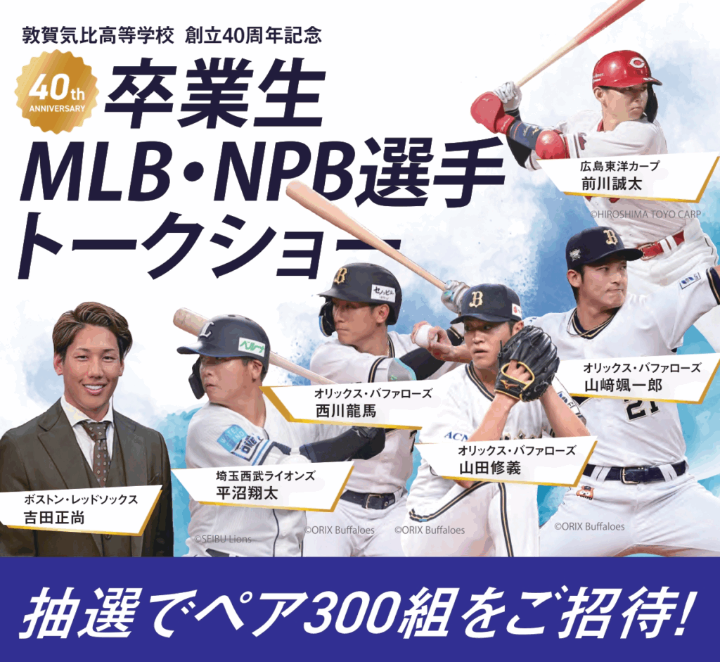 学校法人嶺南学園は2025年12月12日、敦賀市との共催で『敦賀気比高等学校創立40周年記念 卒業生MLB・NPB選手トークショー』を開催いたします。